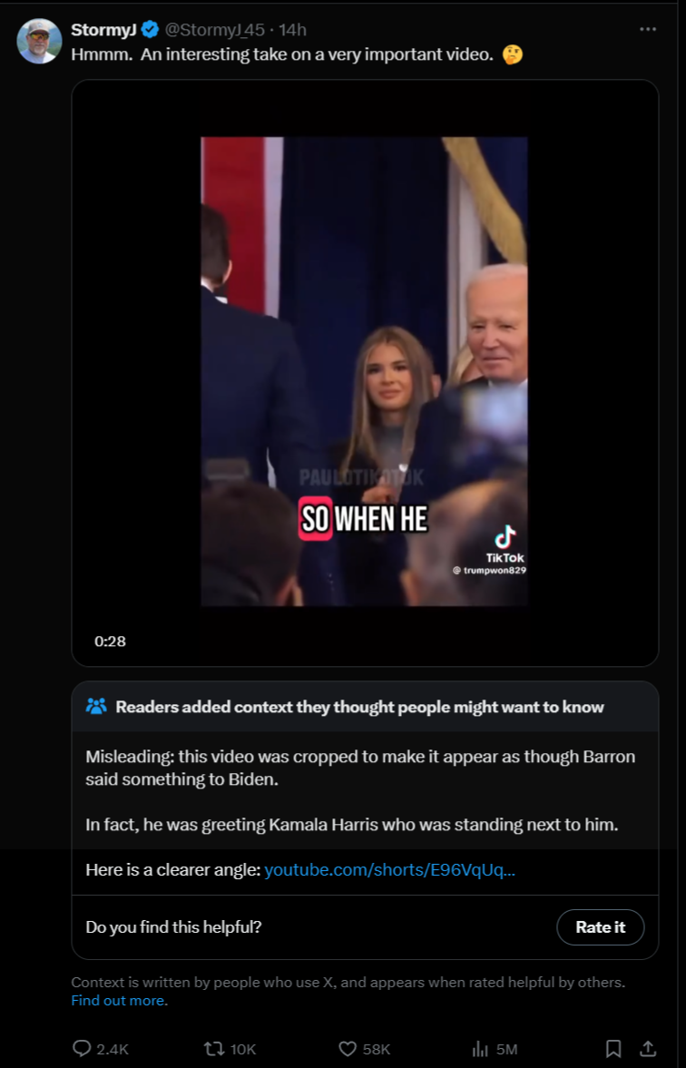 예시를 들어드리자면, 누군가가 소셜미디어에 MAGA 모자를 쓴 남성의 사진을 올린 후 ‘이 사진 속 남성은 모자를 쓰고 있지 않다’라고 적어놨다고 하죠. 팩트체크가 가능할까요? 당연히 가능합니다. 누가 봐도 사진 속 남성은 MAGA 모자를 쓰고 있으니까요.