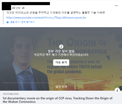 팩트체크에 걸린 글은 이렇게 '거짓 정보'라는 딱지가 붙음.
