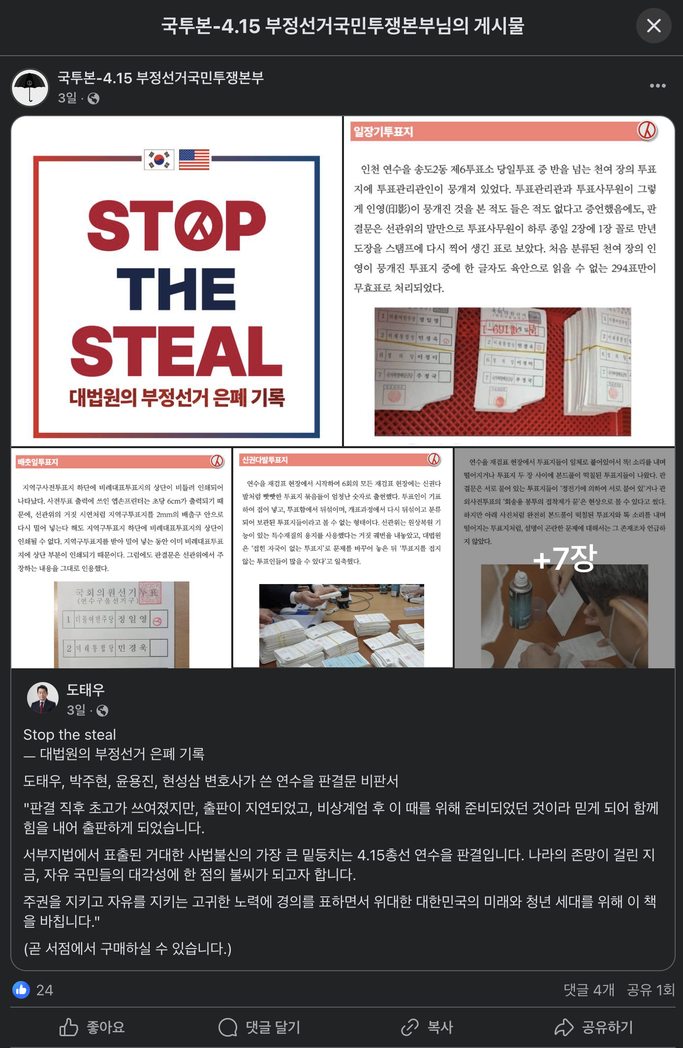 요즘 한국에서도 '부정선거' 관련해 논란이 많습니다. "Stop the steal"이라는 슬로건을 들고 지난 2024년 국회의원 선거에서 부정이 행해졌다는 주장을 하시는 분들이 있습니다. 만일 답변자께서 팩트체커로서 이런 페이스북 콘텐츠를 검열한다면 어떻게 결정을 내리셨을까요?