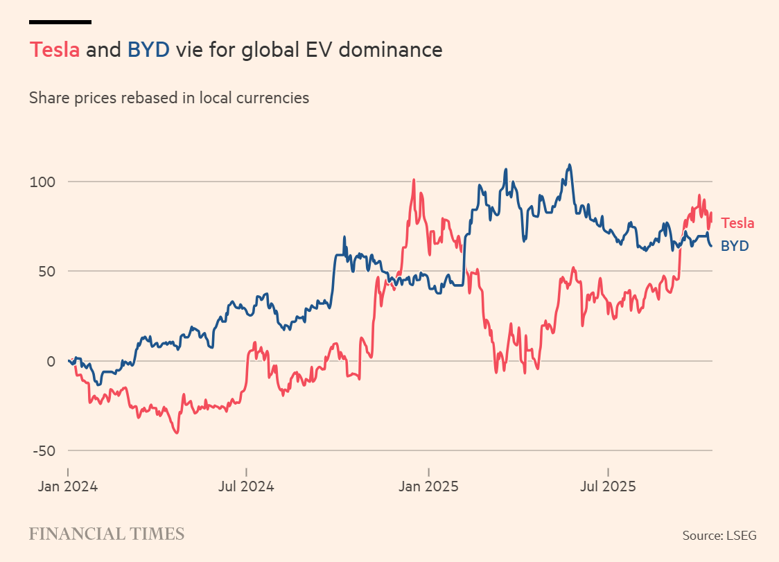 BYD가 글로벌 판매량에서 테슬라를 제쳤을 때에도 사람들이 두 회사의 전기차를 직접 비교하는 일은 그동안 드물었다. 테슬라는 ‘혁신가’로, BYD는 ‘모방자’로 여겨졌었기 때문이다.