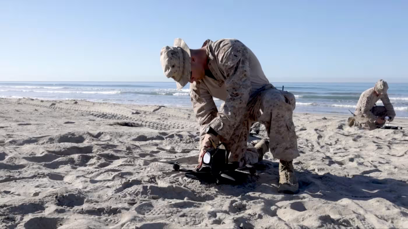 쿼드톱터 조종 훈련을 받는 미군 해병대 병사들