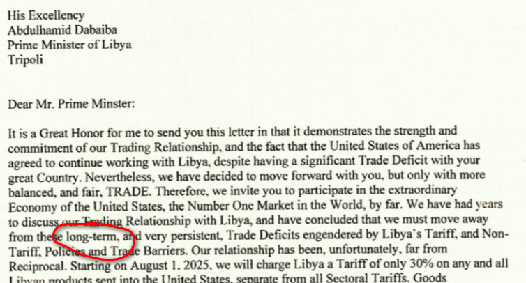 p.s. 3일 후인 7월 10일, 리비아 등 다른 나라에 발송한 서한은 "longterm"을 "long-term"으로 수정했습니다. 결국 백악관에서 누군가 교정을 본 모양입니다.