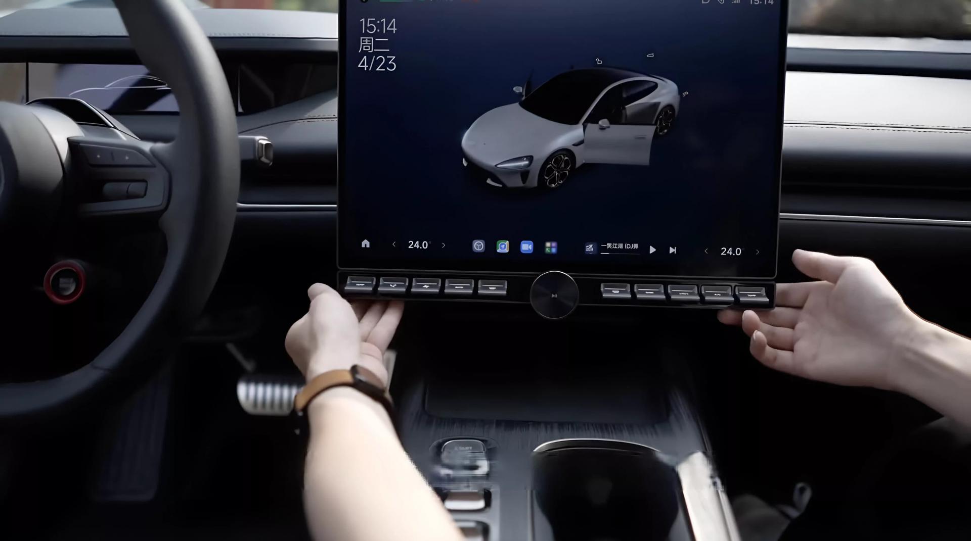 샤오미 SU7의 터치스크린에 결합되는 물리 버튼들