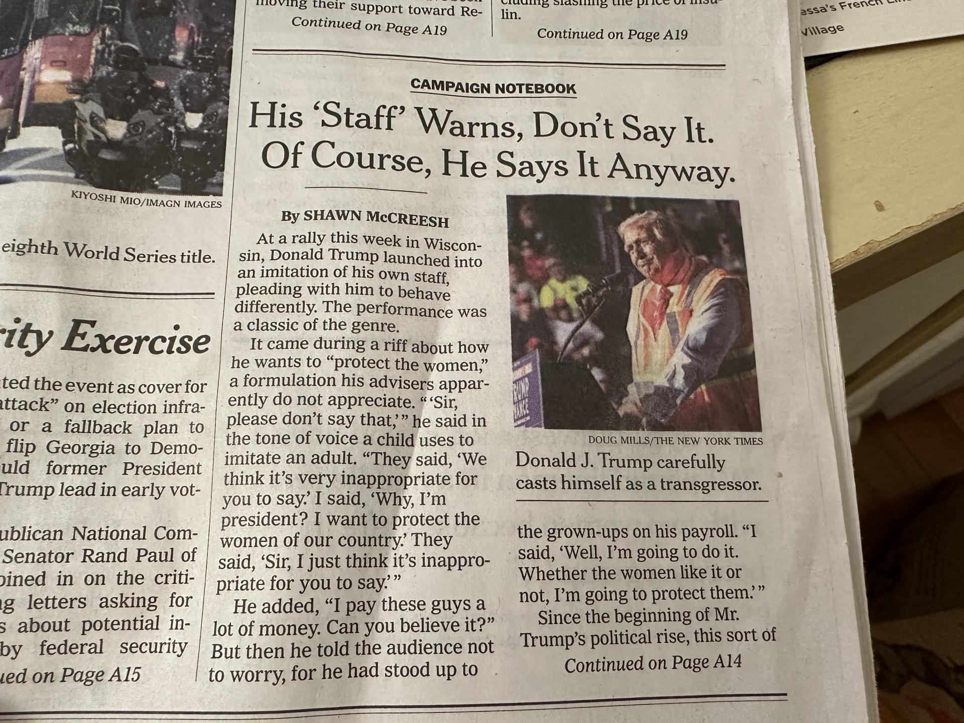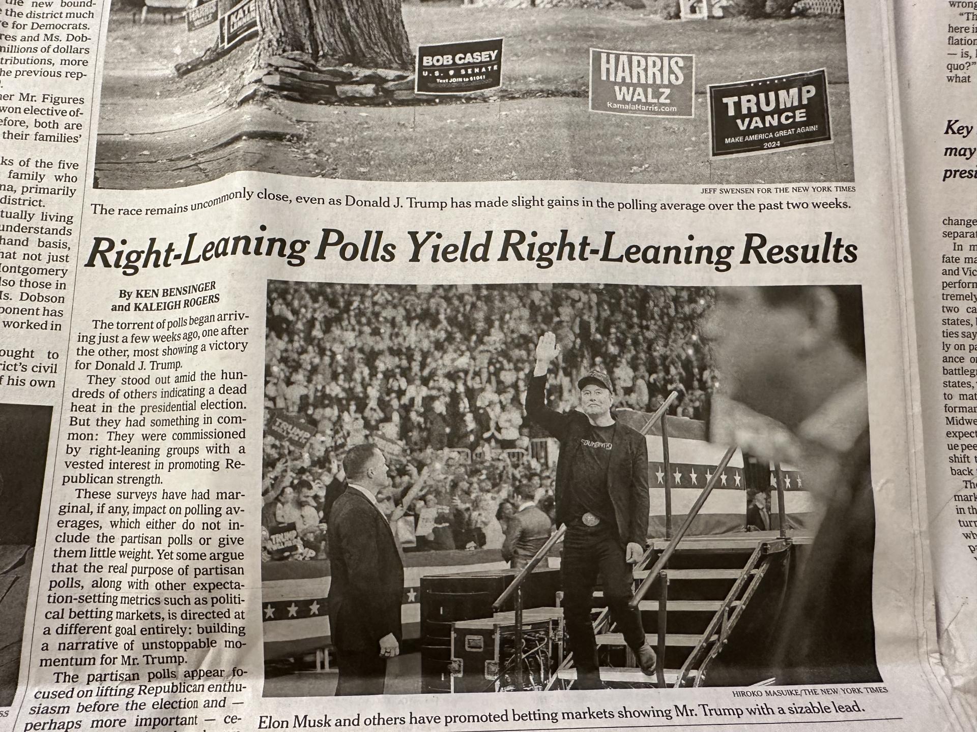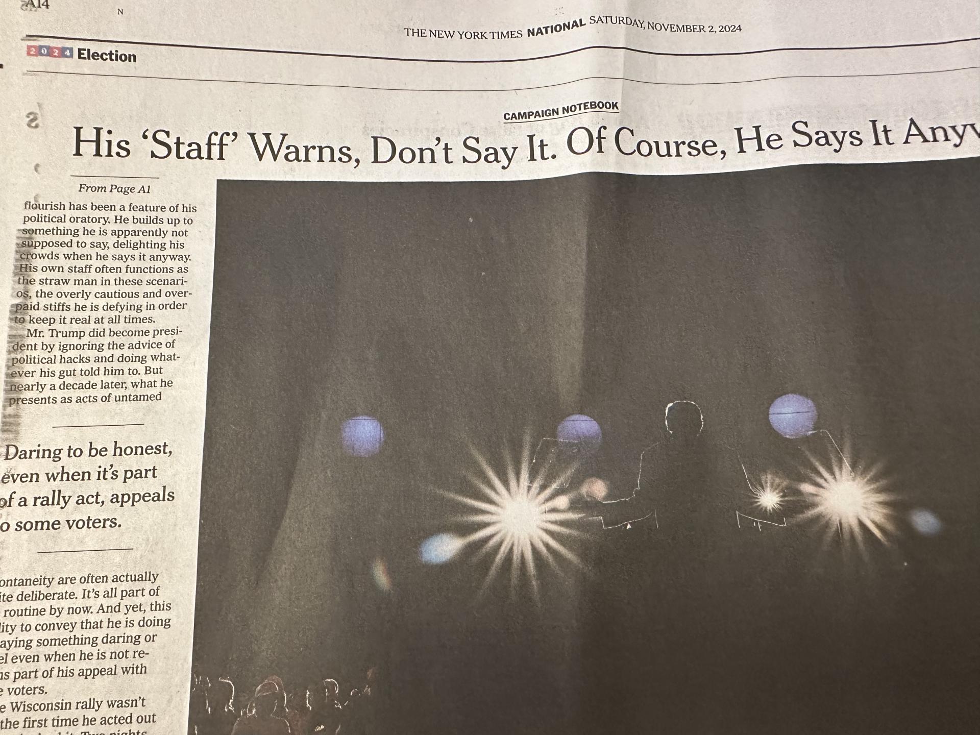 그런데 이번 토요일자 뉴욕타임스를 읽어보니 이상한 점이 느껴졌습니다. 지면 전체에서 해리스보다 트럼프 얘기가 훨씬 많은 것입니다.
