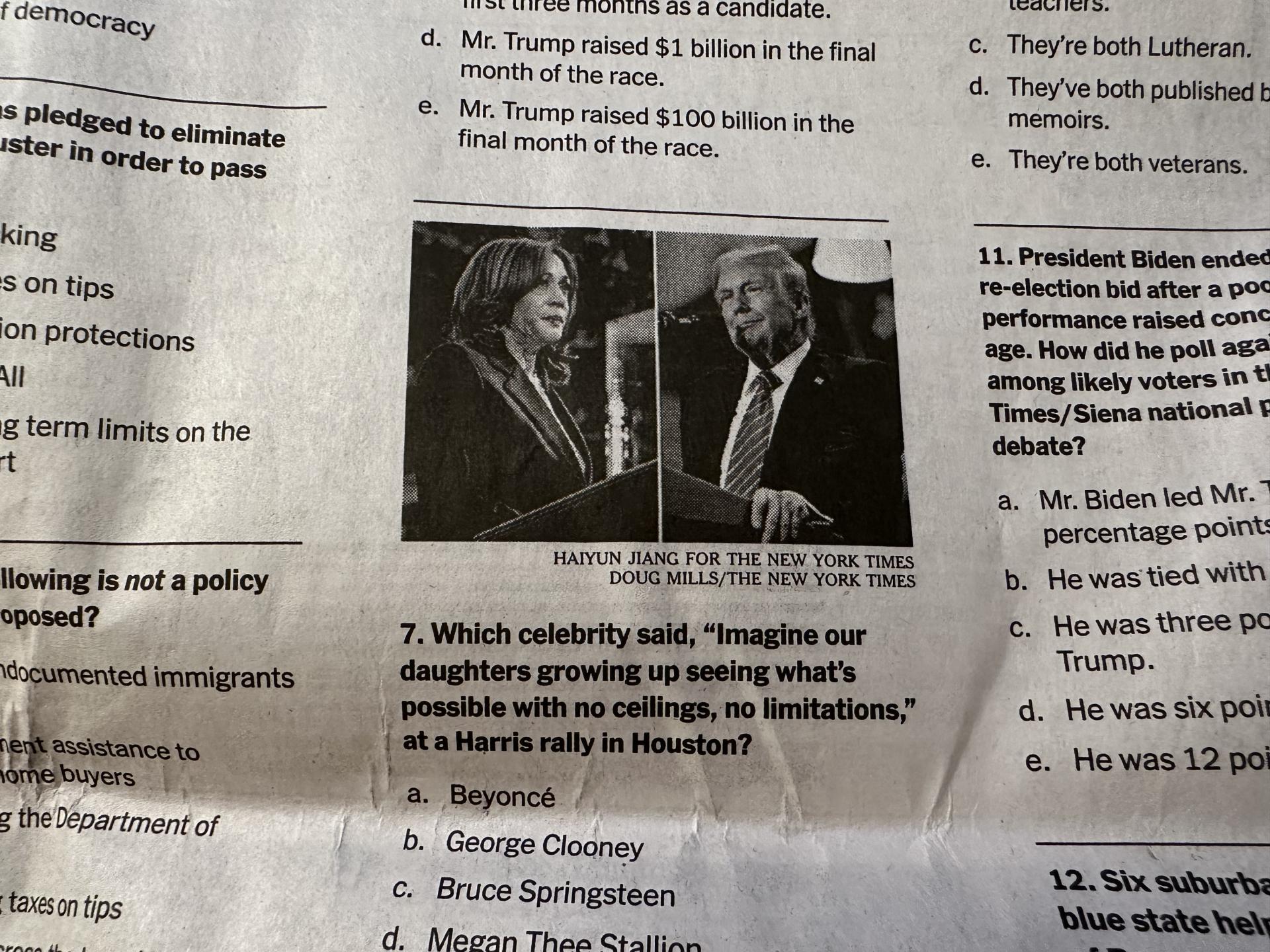 2면: 트럼프와 해리스에 대한 퀴즈
