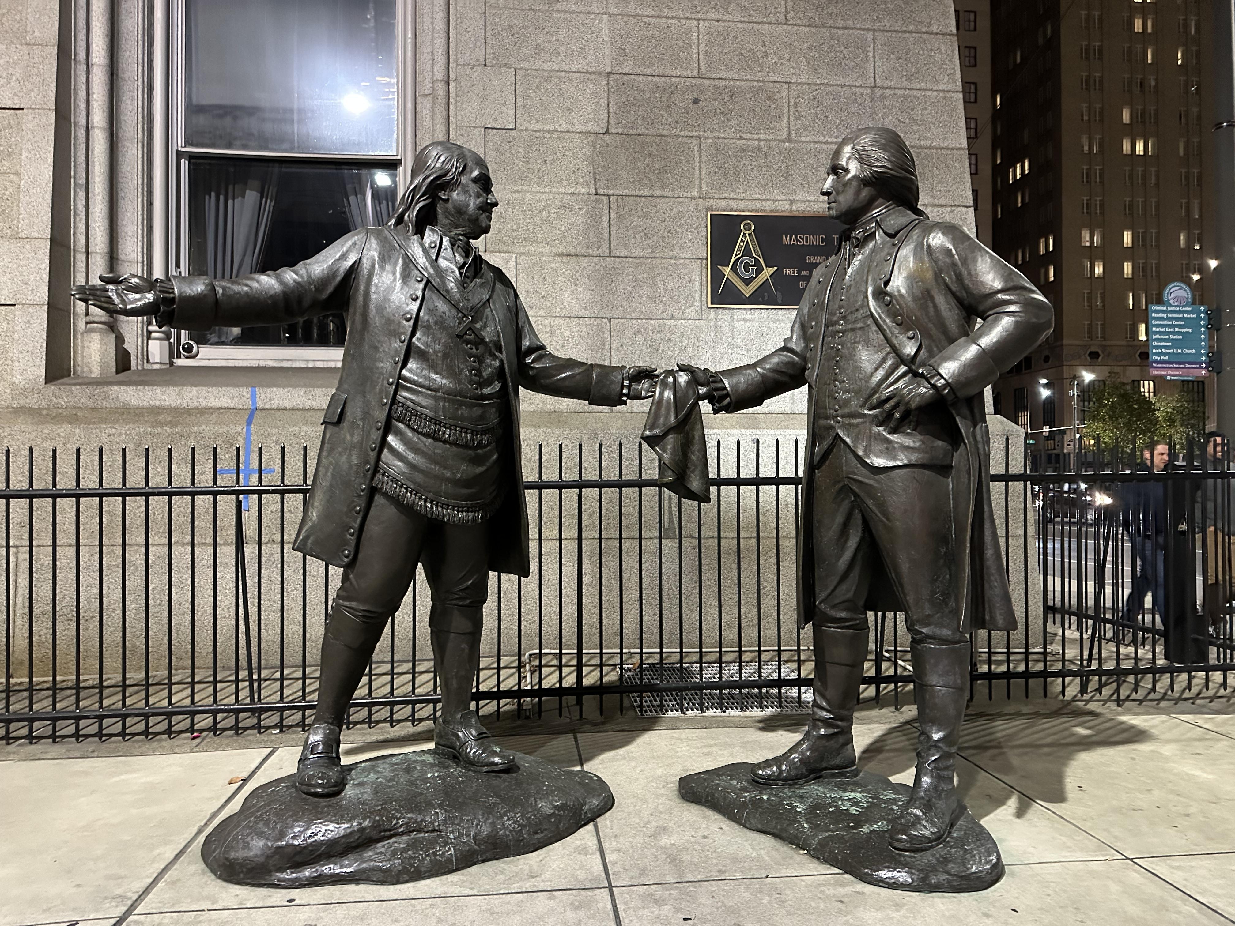 한편, 다운타운에 있는 역사 유적 '자유의 종' 앞에서는 트럼프 지지자도 만났습니다. 트럼프 인형을 만들어 들고나온 노부부 입니다. 필라델피아의 친 민주당 정서를 생각하면 이렇게 다니는 것이 좀 위험할 수도 있는데 그들은 개의치 않았습니다. 저와도 기꺼이 사진을 찍어주었습니다.