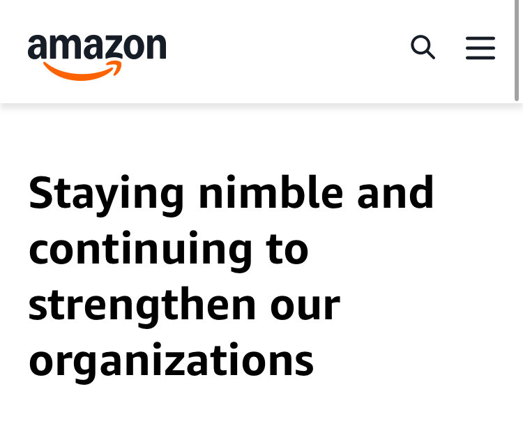 아마존이 AI 도입에 따라 직원 3만명 감축 발표( 조선닷컴). 오피스 인력 1만4000 명 포함. 삼성전자 무선사업부 전체를 해고한 것과 비슷한 수준. 회사측은 "Staying nimble"을 위해서라고 발표.