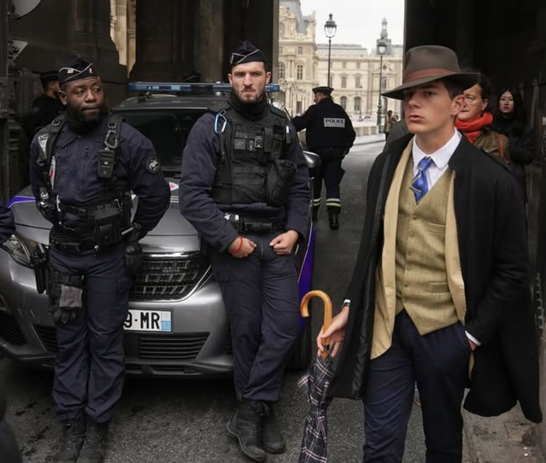 - 사건 후 파리 경찰은 박물관을 며칠 간 삼엄하게 통제. 그러던 어느날 페도라 모자를 쓴, 고전 소설 속 형사 같은 복장을 한 남자가 아무런 제지를 받지 않고 저벅저벅 걸어들어감. 경찰관들은 멍하니 바라보고 기자들이 사진을 찍음.