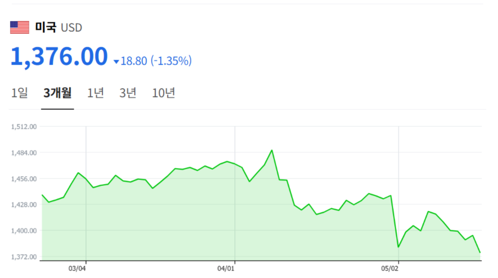 • 미국 달러화가 약화되어 원-환율이 1376원까지 하락. 6개월 최저 수준.