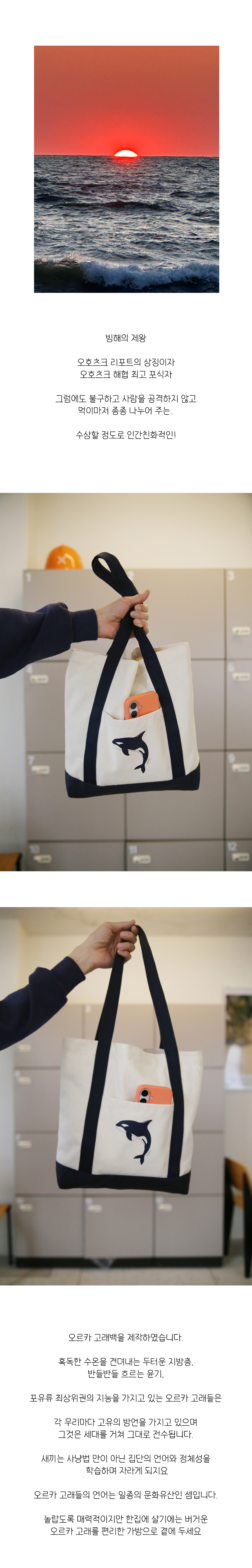 - 오호츠크 리포트의 마스코트인 오르카 고래가 귀엽게 프린트되어 있습니다.